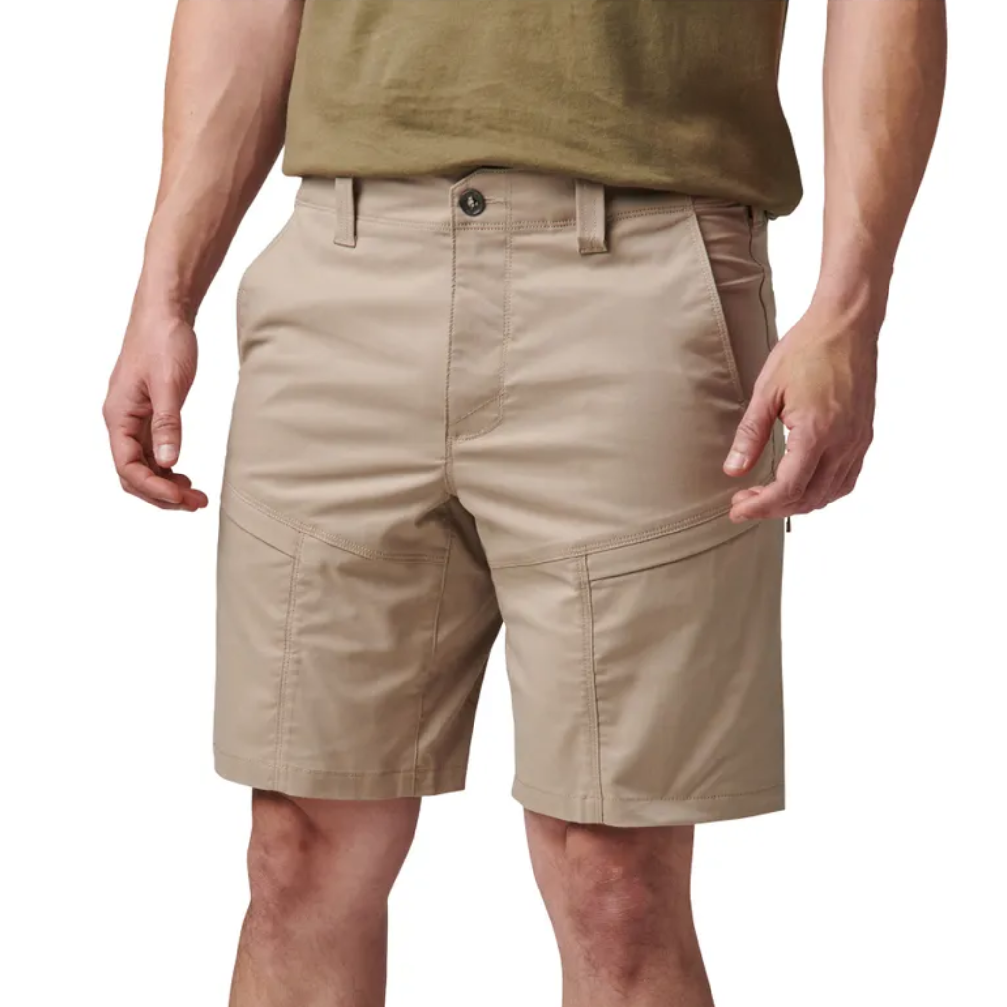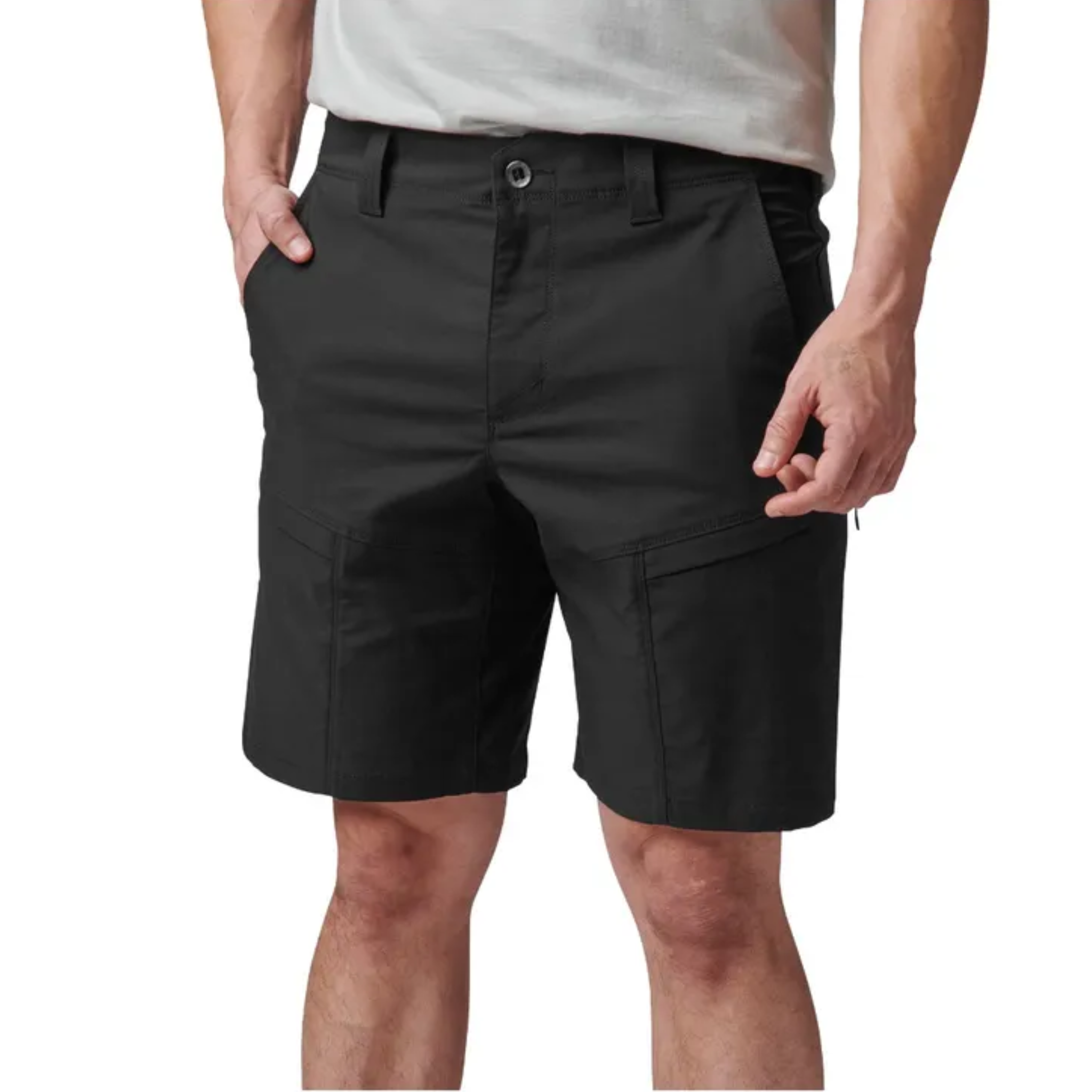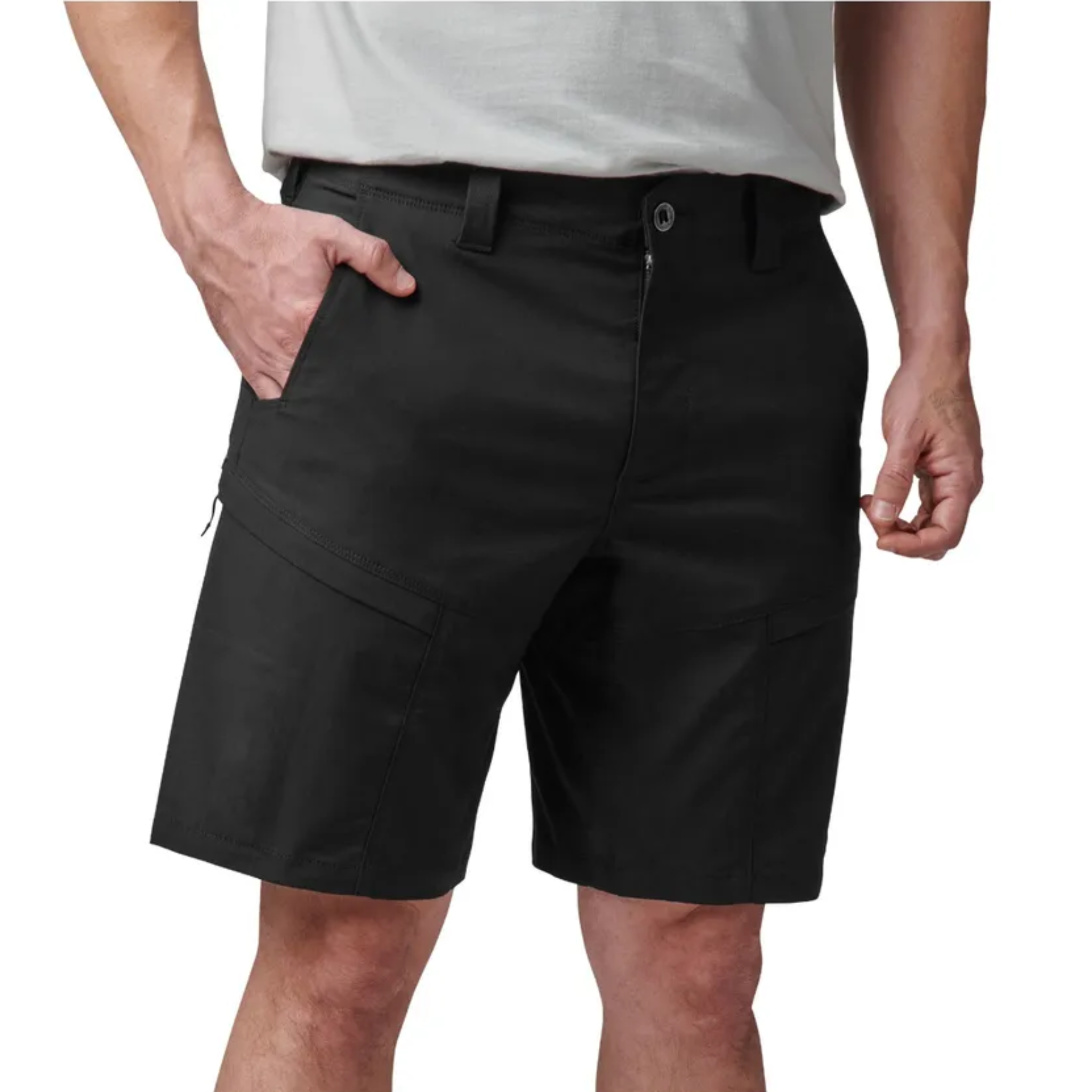 Stay prepared with eight strategically placed pockets, including low-profile zipper cargo pockets with hidden compartments, reinforced front hand pockets for your everyday carry (EDC) knife, back patch and utility drop pockets, plus a concealed cuff-key pocket inside the back waistband for secure storage. The branded slot button and 5.11[+] woven logo provide a sleek, tactical look.