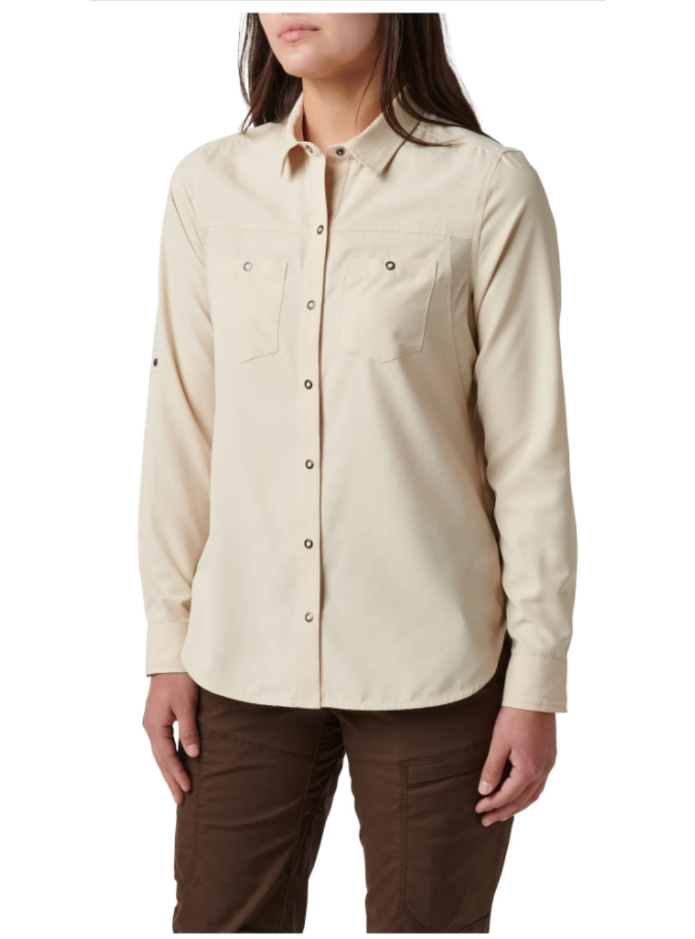 • Roll up sleeves secure in place with sleeve tabs