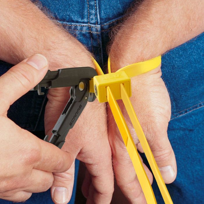 Featuring an innovative spring-assisted lever action, the Scarab cutter enables smooth, one-handed operation, allowing you to cut restraints effortlessly while maintaining control. Its unique hidden blade design significantly reduces the risk of injury to individuals in custody and prevents the tool from being turned into a weapon against you—ensuring enhanced safety for officers and subjects alike.