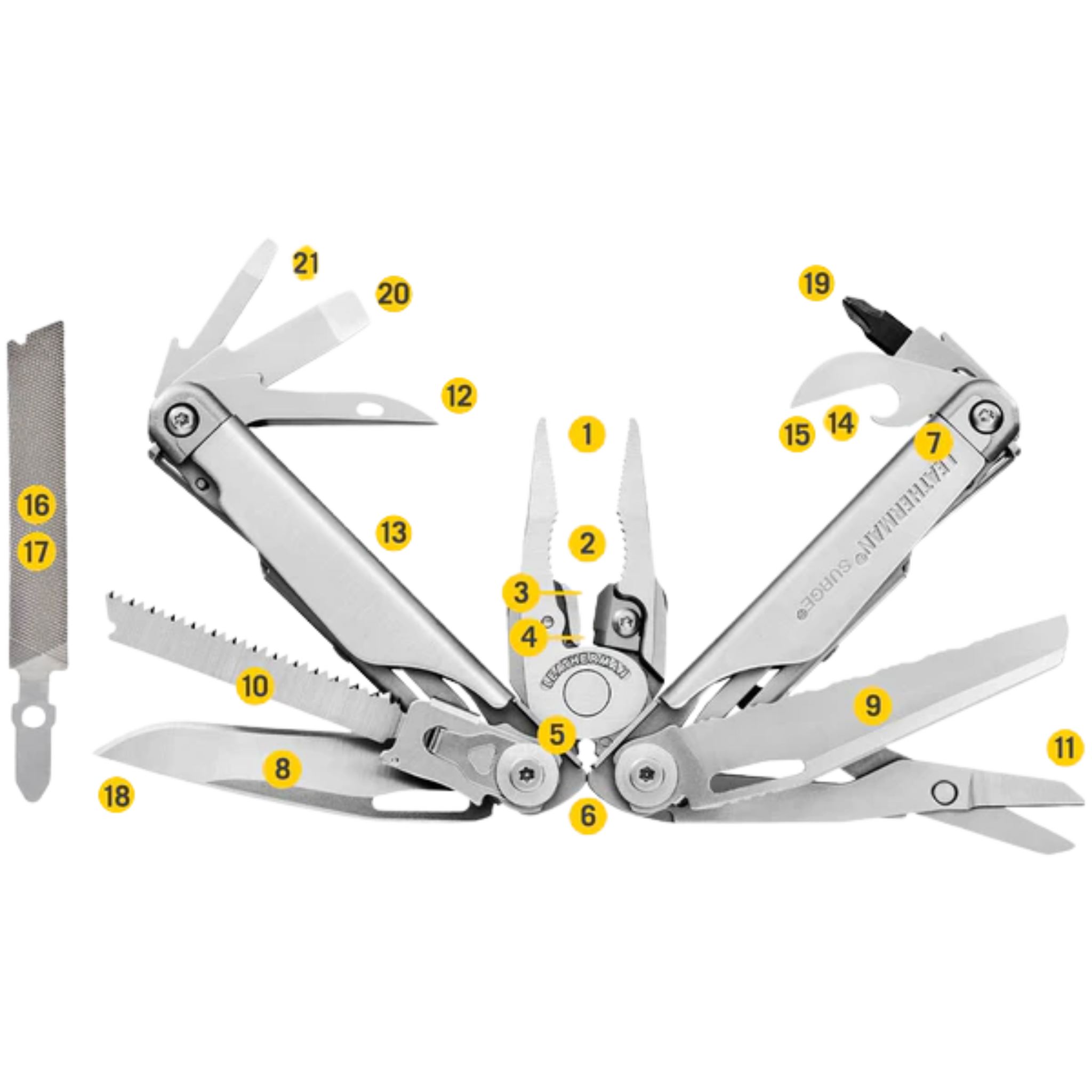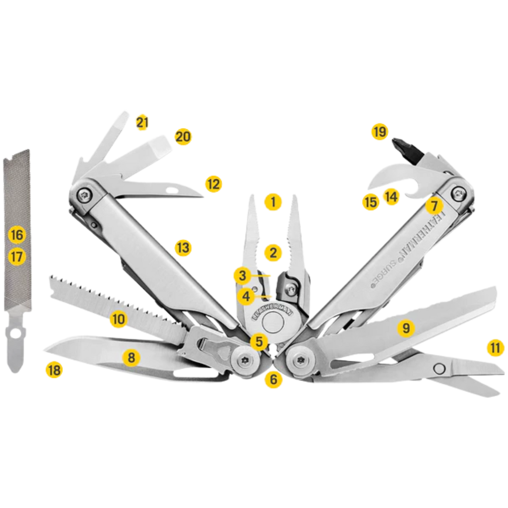 The Leatherman Surge is a true heavy-duty workhorse—a powerhouse multi-tool designed specifically for tough jobs and the hands that do them. As one of our two largest multi-tools, the Surge is built with our largest pliers, longest multi-tool blades, and easy-to-use locks, giving you the leverage and strength needed to tackle demanding tasks.