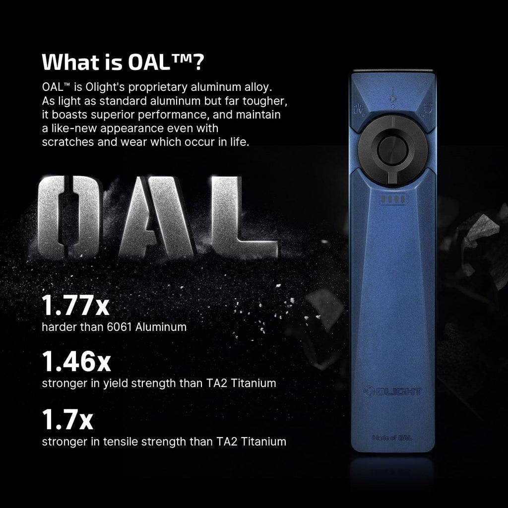 Built from exceptionally durable O-aluminium, this multi-use flashlight combines hardwearing performance with a striking, futuristic look. Sharp edges, angular lines, and a matte finish give it a standout appearance, while the uni-body design keeps things slim and pocket-friendly.