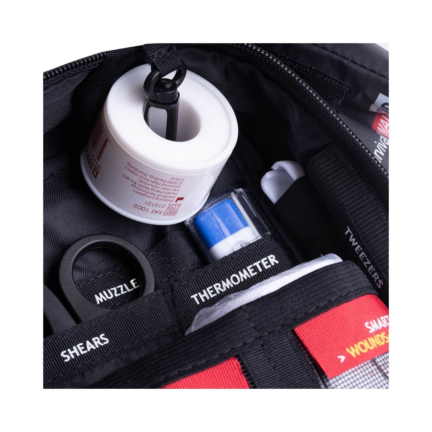 Built-in SURVIVAL WALLET with wound care essentials