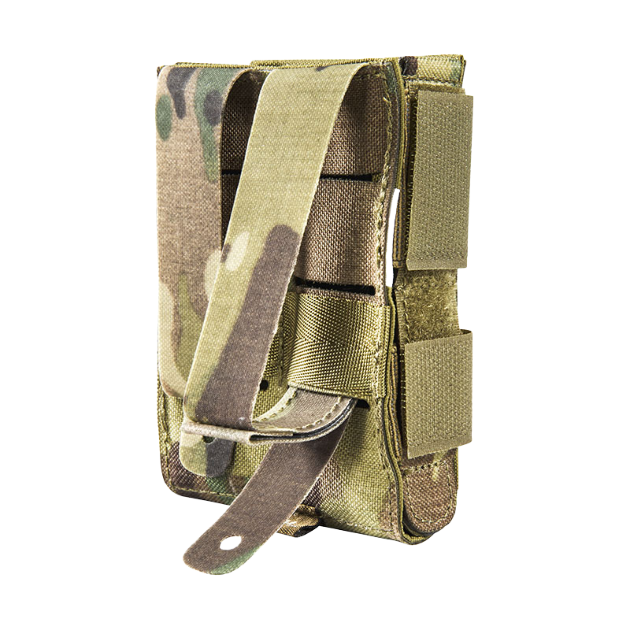 Shape stability is created through a 3-layer wall construction, ensuring the pouch maintains its form for fast re-indexing and drawing. It features the MOLLE reverse system for secure attachment to any compatible platform and only requires two MOLLE loops.