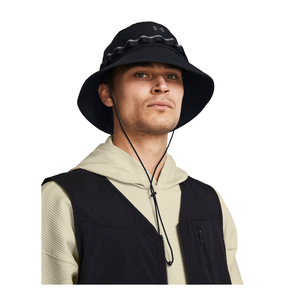 The Under Armour ArmourVent Men's Bucket Hat is engineered to keep your head cool and comfortable in the heat. It achieves this by utilizing special vents that allow hot air to escape, while remaining small enough to block the sun's harmful rays.