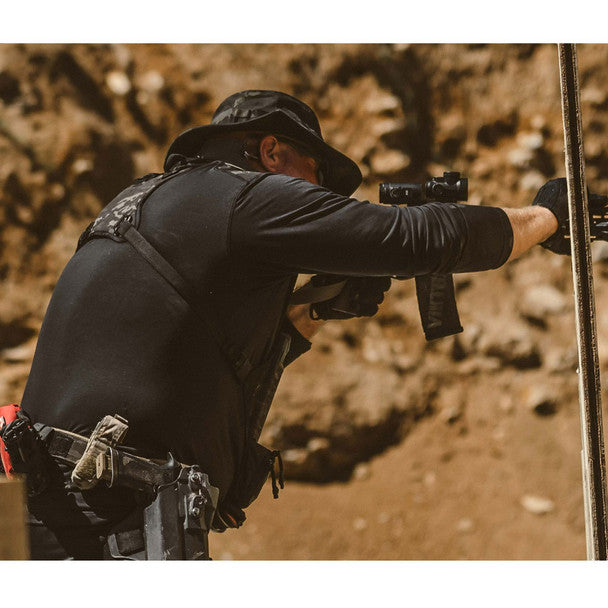 Built from a Coolmax/Cotton blend for premium cotton hand-feel while exhibiting superior wicking/cooling, the Range Trainer jersey is perfect for tactical coverage. The fit is tailored for a professional appearance, while the long sleeves protect your arms from UV. Reinforced shoulder overlays are an up-armored nylon/cotton solution to the friction from slings and plate carriers, providing increased longevity. In addition, the jersey features a Silvadur antimicrobial treatment to reduce odor.